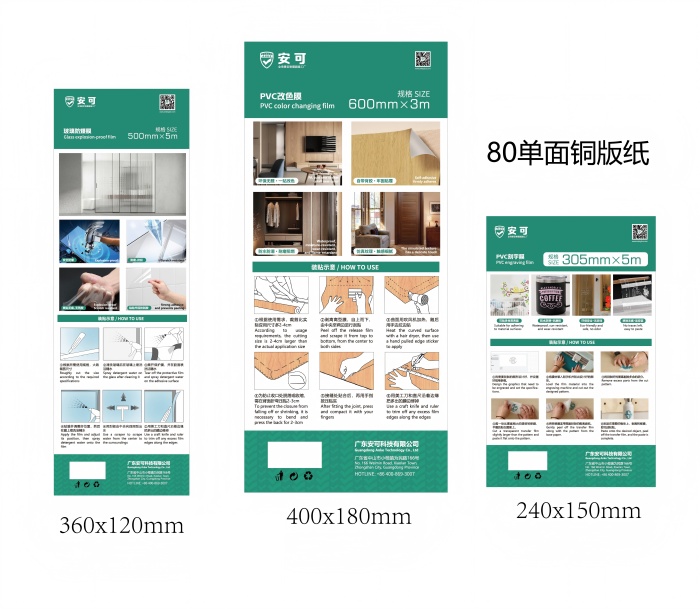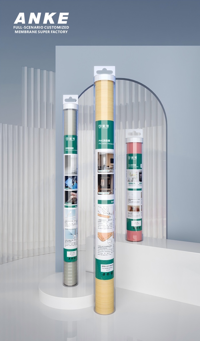 -Màng cuộn nhỏ với chiều rộng đó: chiều rộng phổ biến là 20cm, 23cm, 25cm, 30cm, 40cm, v. v., và chiều dài khoảng 1000m. Nó có thể được sử dụng cho cửa ra vào và cửa sổ, nội thất, phim trang trí, vv ví dụ, màng trang trí đặc biệt của anke Group có thông số kỹ thuật là 300mm * 3m;1220mm x 50 m. Ngoài ra còn có cuộn giấy dán tường nhỏ, chiều rộng 530-600mm và Chiều dài 10-12 m. -Màng cuộn nhỏ rộng: Chiều rộng có thể lên tới 1260mm hoặc thậm Chí rộng hơn, và chiều dài thường được xác định theo nhu cầu thực tế. Nó thường được sử dụng để phủ các tấm trang trí lớn, chẳng hạn như mặt nạ trang trí hạt gỗ PVC của guanrou của anke Group, với chiều rộng thông thường là 1260mm.